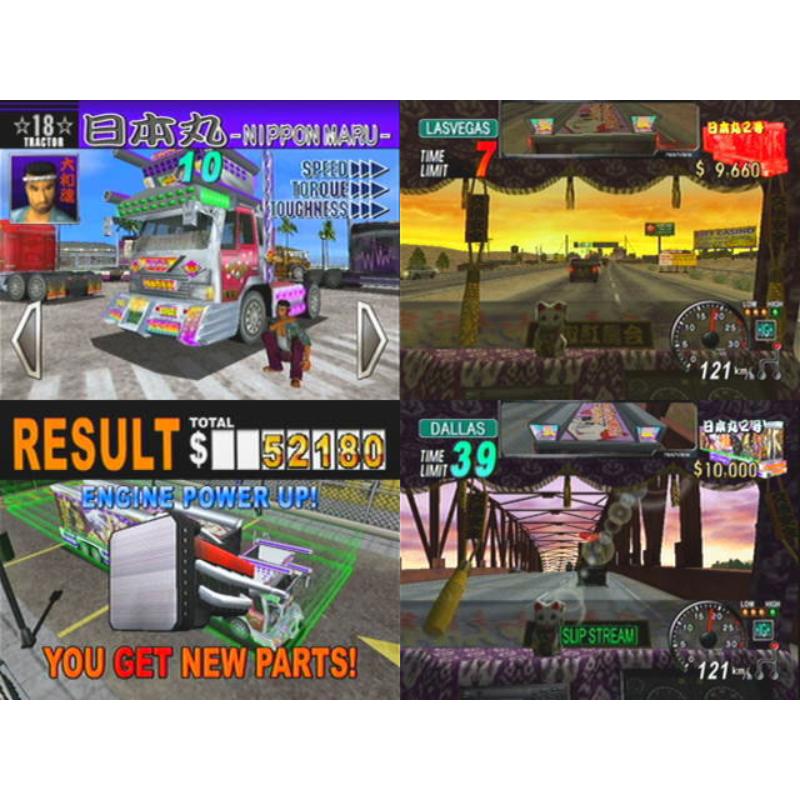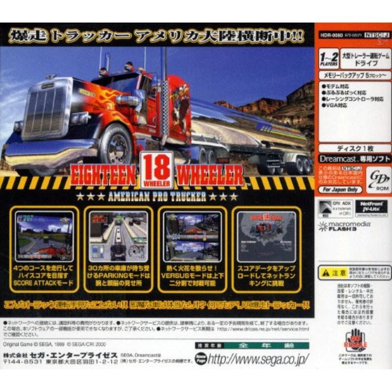 Eighteen Wheeler captures the feel of getting behind the wheel of a multi tonne monster and terrorising fellow drivers as a bad mother trucker should. Features a Dreamcast mode courtesy of Sega along with versus, score attack even parking modes. Running fellow truckers is one thing, but parking the beasts will soon bring out the bluest of language from the most laid-back Sunday drivers. Subtitled American Pro Trucker.