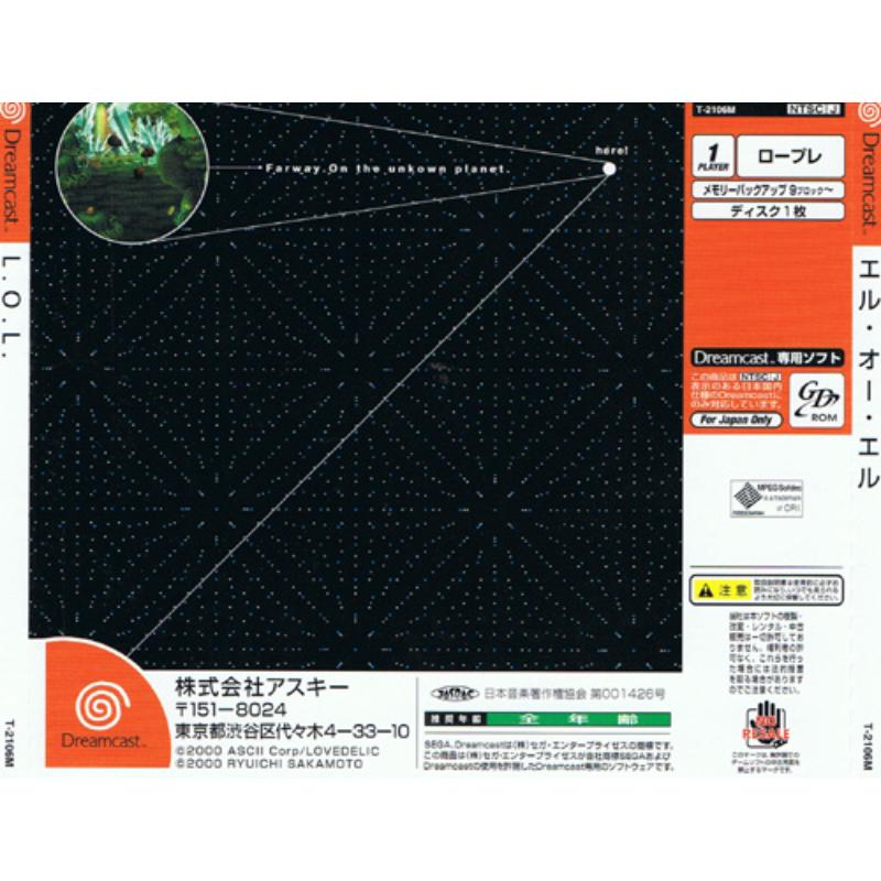 L.O.L is a genre bending Dreamcast experience worthy of a much wider audience with no linguistic obstacles to enjoying its charms. Gameplay involves helping other beings in an organic gaming world to evolve by showing them a little bit of care and attention. Later elements involve puzzle solving as the players creature slides up the evolutionary scale. The soundtrack was produced by the mighty Ryuichi Sakamoto of Mr Lawrence fame and has that same spine tingling effect with each note bridging the synapses for its length. Overall this is probably the least known Dreamcast title whose abundant talent unfortunately enjoys an inverse relationship with its fame. Spread the word.