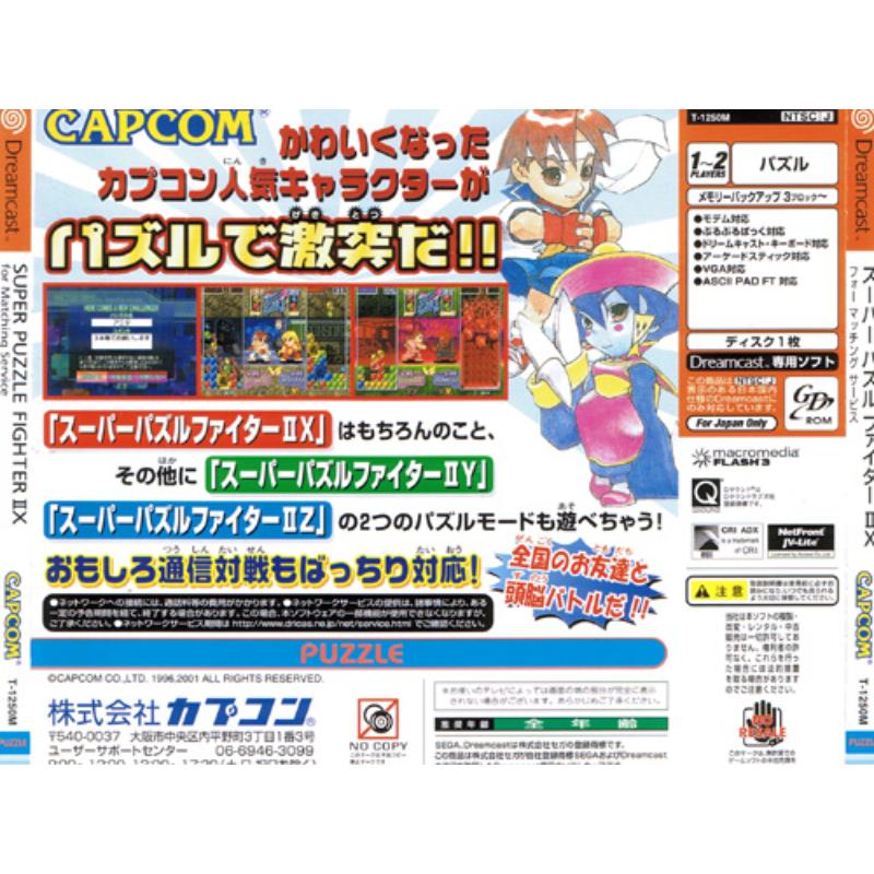 Matching Service update of the Saturn classic and as such only available from Sega Direct Japan. Frantic action as super deformed colourful Capcom characters do battle with their brains to match up crystals and clear the screen. Fiendishly simple, devilishly addictive, classic Capcom.