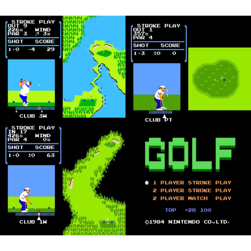Fine Famicom family fun as players ruin a good walk by following the ball around the course. Nice animations of the player and the split screen map works well to set the standard for many golf games to follow.