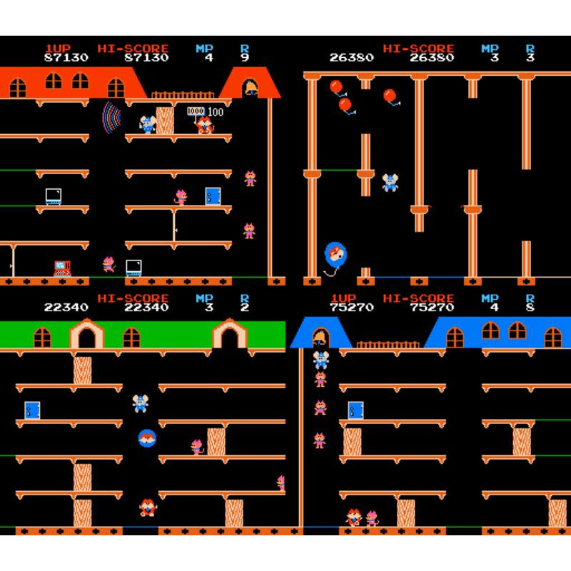 The sort of title that works a treat as Nyamcot (as the cat crooks of the game would say) brings its vintage arcade formula to the Famicom. Players star as a wee mouse that must retrieve stolen goods from the platform levels with the help of trampolines from the bad cats. Pairing up hot goods results in a higher score and adds an extra tactical dimension to the gameplay. A real cult classic.