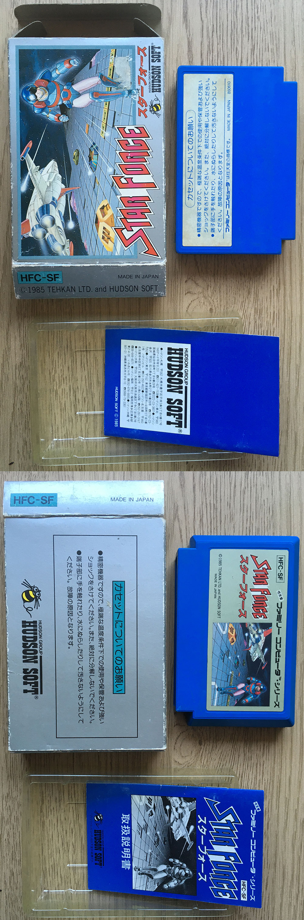 Classic old school shooter from the kings of the Famicom era Hudson that ruled the roost with fast paced, arcade shooting action, to paraphrase from the era. Superb box art and good, wholesome gameplay.