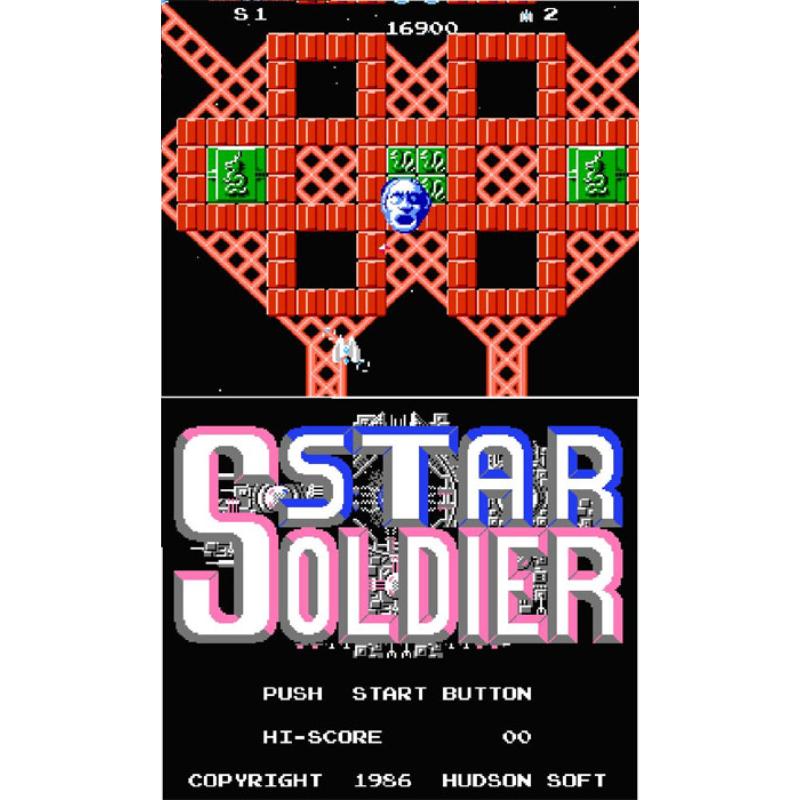 Highly collectable original Famicom version. The graphical limitations made programmers work hard on gameplay where Star Soldier excels. The robotic brain pays a visit at the end of level mutating into a bigger, badder boss as you progress. The whole epic series started here.
