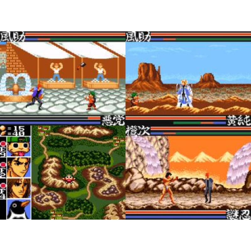 Plenty of variety in the impressive background visuals with towns, beaches, forests and mountainous levels complete with waterfall. Great use of the two buttons to provide some cracking special moves. Completion of the title allows you to play as any of the colourful in game characters.