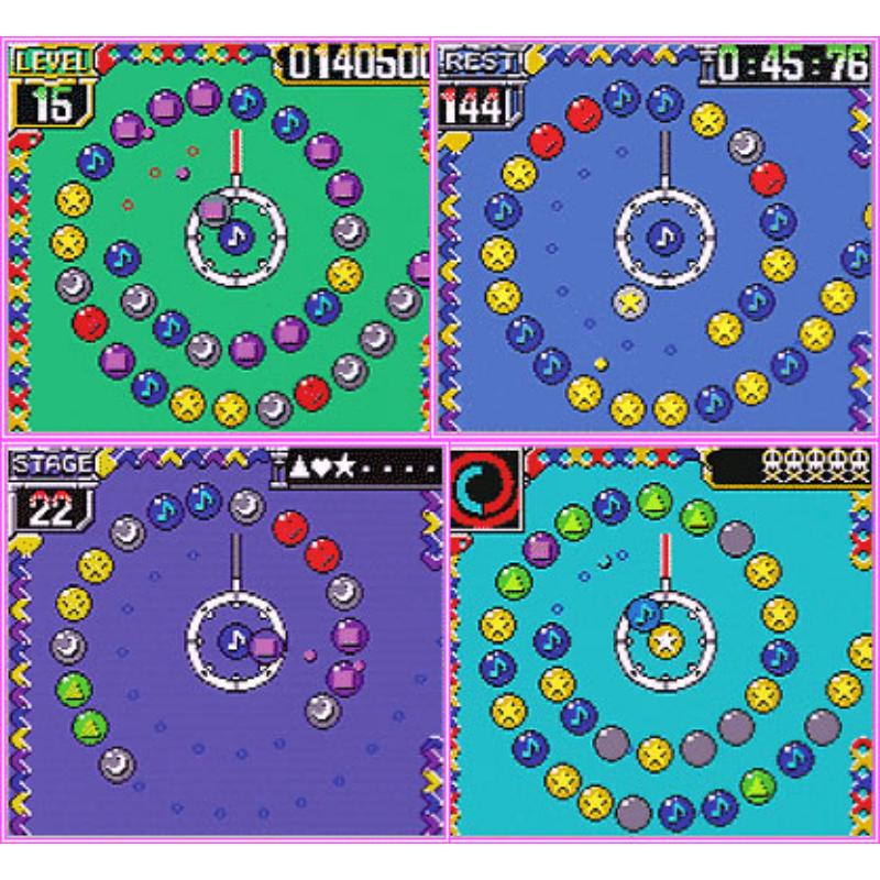 A simple yet effective concept as the players base gets slowly encircled by the various coloured spheres on a chain. Players control to fire out their own spheres to make chains and give themselves some breathing space. Known as Ballistic in the West.
