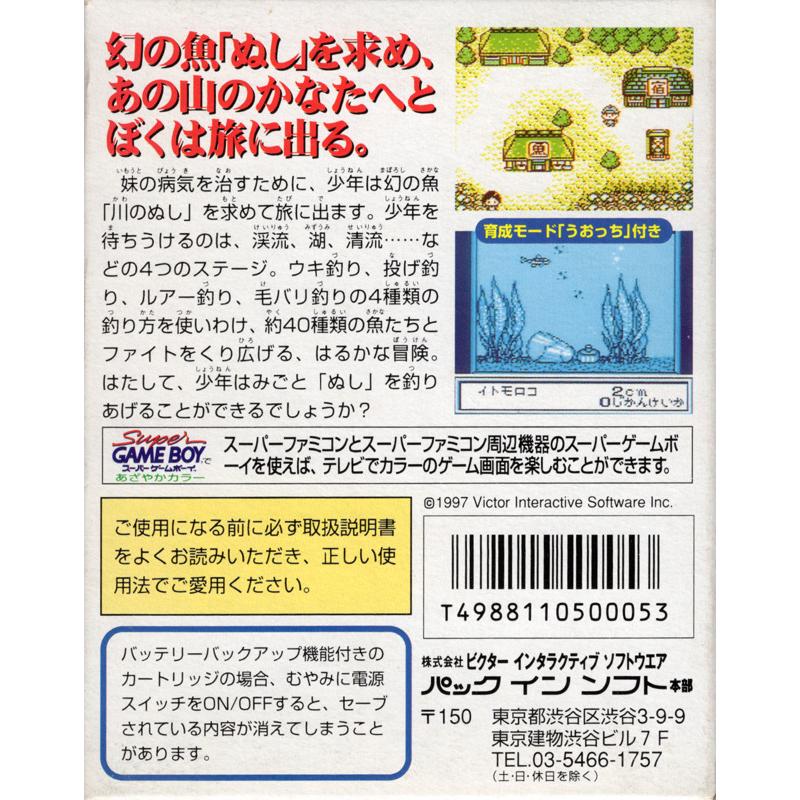 Fish the beautiful village getting tips from the elderly 'ojiisan' and interact with the townsfolk to savour the good life. Choose the right bait and peg and away you go in this GameBoy equivalent of Mortimer and Whitehouse Gone Fishing. Known in the West as the Legend of the River King.