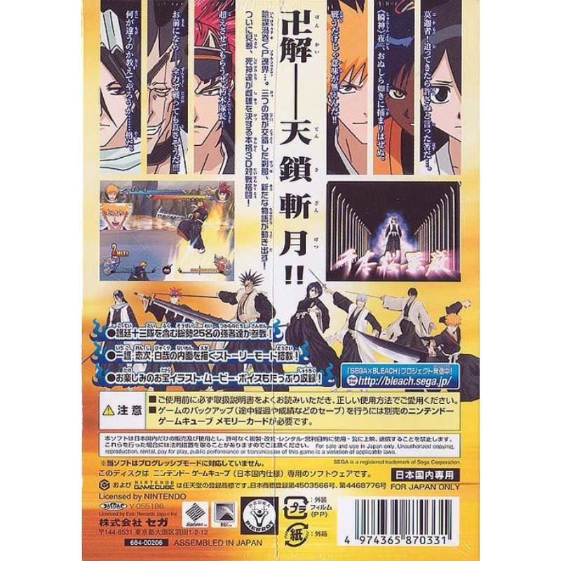 With more speed lines than an episode of Go Go Mach 5, Bleach GC remains true to its anime roots. Clever combos and counters are essential to survive the sharp steel weaponry. The GameCube effortlessly tosses the cel shaded sprightly pugilists around screen with lavish fight arenas and much added by avatars and cut scenes, besides the in game banter.