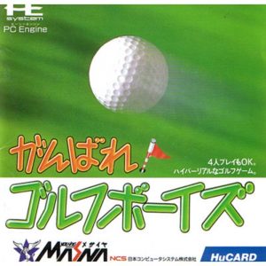 Overhead perspective attractive golf title with four player option. Maybe Genki should listen to the caddy’s advice more often..? Also known as Go For It Golf Boys.