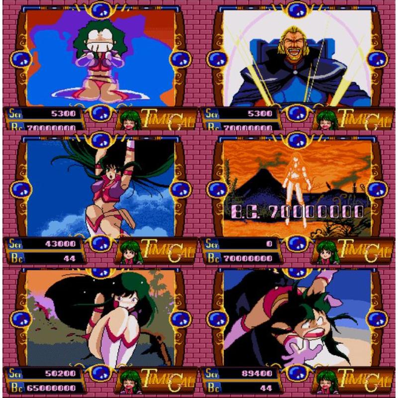 Dragons Lair style gameplay given a greater degree of reaction time and a very slick setting. Time Gyaru features a retro style anime girl that must leap from time zone and era when the going gets too tough all realised in adoring graphics. Failure to select the right option leads to a satisfying death sequence which make for fun, if improper viewing. On completion the game can be played in mirror mode to test reflexes rather than memory.