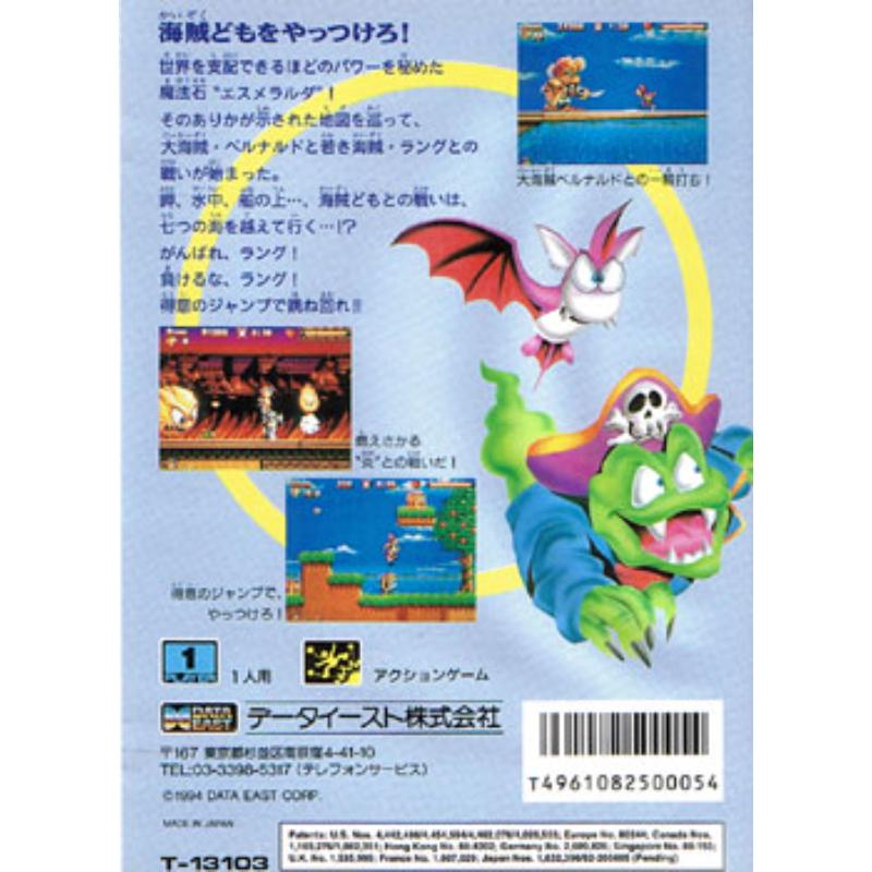 Pirate themed platform action, with lush sprite graphics and gorgeous backgrounds including stars and icebergs - try not to let the substandard box art put you off. From an era where every company needed a mascot due to the runaway success of Sonic and Mario. Quite a rare title in its Japanese release. Known as High Seas Havoc in the West.