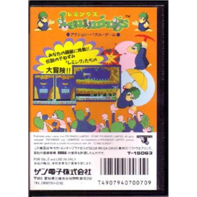 A very playable Mega Drive version of the well known Lemmings series where players redirect the absent minded Lemmings away from hazards they are seemingly oblivious too. Small cart box which was quite unusual on the Japanese MD.