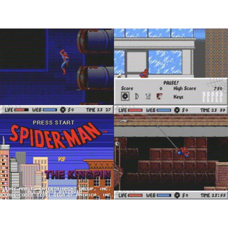 Spidey gets in many a tangle in this classic 16 Bit outing with a graphical look suited to the format and also to the comic look. Cityscapes make for a poignant background as Spiderman crawls along ceilings and utilises his web firing skills to take down the bad dudes. Subtitled Vs. The Kingpin.