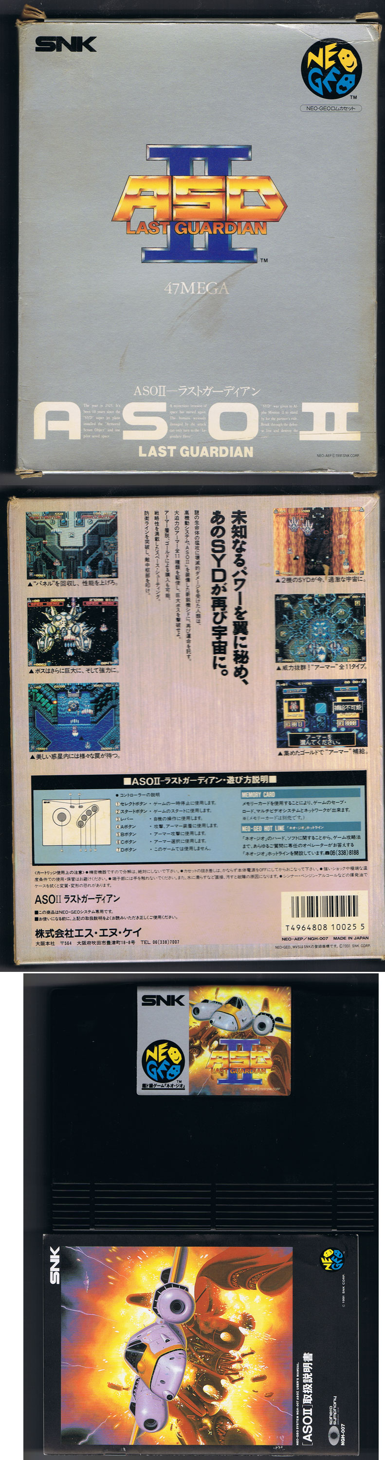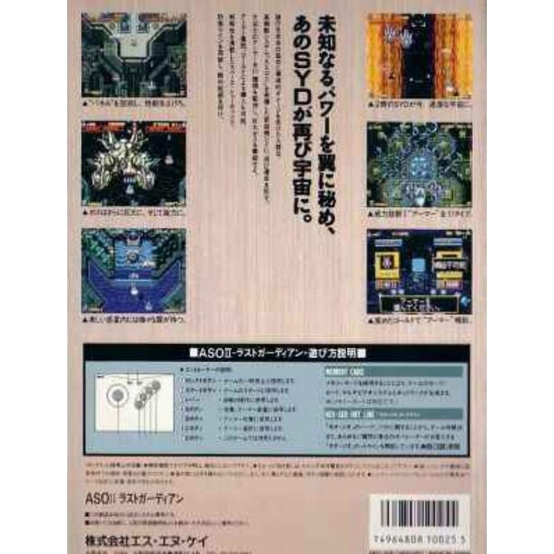 Early AES port of the pleasant vertical scroller with tight controls that sees the pilot needing to take down both air based spaceships and land based cannons. Power ups can be shot at to cycle through the various options available before cashing them in. And the soundtrack really kicks in when the ominous bosses cruise into vision. Also known as Alpha Mission 2 or ASO 2.