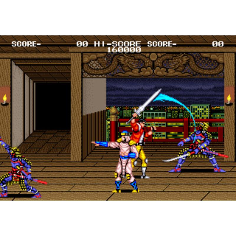 Side-scrolling scrapping action as the two tough dudes named Dan and Bill take on a mish-mash of unearthly creatures hell bent on causing havoc. Set in a modern day US under siege from Japanese spooky, supernatural samurai spirits and ninjas with the President pleading for help, it's the sort of cliche setting modern video gaming misses. Thankfully our heroes can also cash in on this supernatural shogun cult and transform into beast bashers or fire lightning bolts from a possessed sword. Also known by its full title 'Sengoku Densho.'