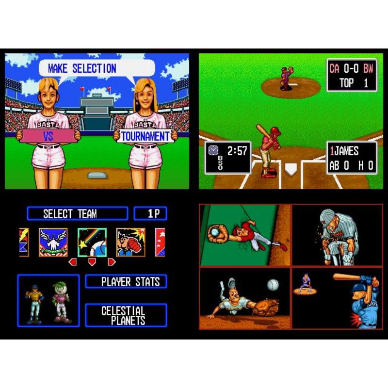 Early baseball game from the sturdy SNK stable that uses that unique, exaggerated emotions of the players to capture the fun of the sport. Spoilt sluggers will lose their tempers snapping the bat in two at being out, but the mechanics are nice and simple making it easy to pick up and play for those lacking a passion for pitching and without an inkling for batting.