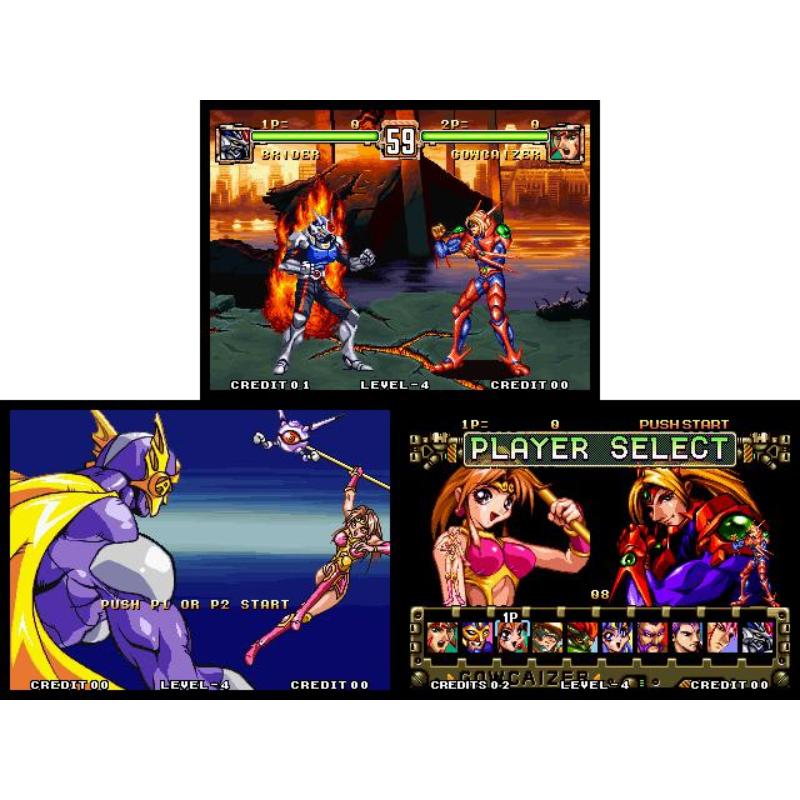 Quite a collectable title being a bit of a cult classic with anime protagonists and some sublime backgrounds including a night club showing one of the female fighters getting foxy on a giant screen. Far more financially feasible than the Neo Geo AES version and boasting one of the cheesiest game characters known to man in Captain Antlantis. Known in the West as Voltage Fighter Gowcaiser.