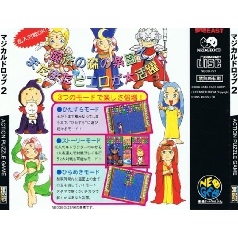 Gameplay is similar to the 'Puzzle Bobble' series from Taito therefore not recommending itself to the colour blind gamer. The usual array of cute, super deformed, fantasy characters to choose from. Two player is where Magical Drop excels. And Magical Drop is really one of the finest puzzle games on the platform with very slick presentation in an anime style.