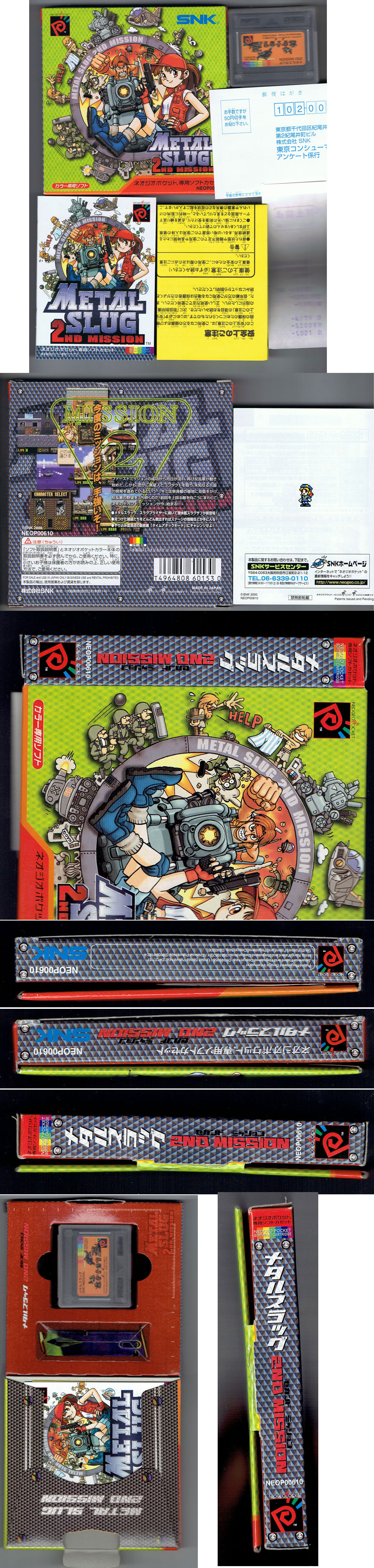 Second hand. Neo Geo Pocket Color. Includes original receipt, registration card and warnings leaflet. Slight wear to the card box where the flap goes in and on the top flap, but otherwise in great shape considering the box nature apart from a small crease on the corner of the top flap.