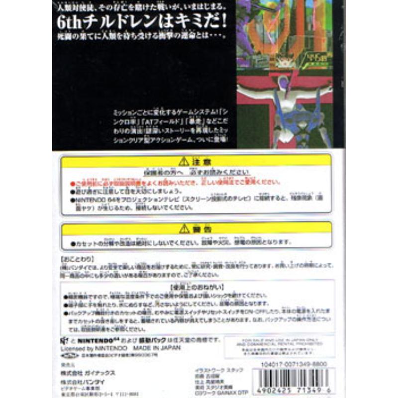 Only Evangelion game released for the N64 and what a cracking title. Takes the key moments from the anime series and allows you to replicate them in full 3D (without fogging) and with full control, something often found lacking in licensed software. Yet still backed up with speech and cut scenes - mightily impressive considering it's humble cart origins. But this title is more than just fan service making it accessible to all as a very solid part of any serious N64 collection.