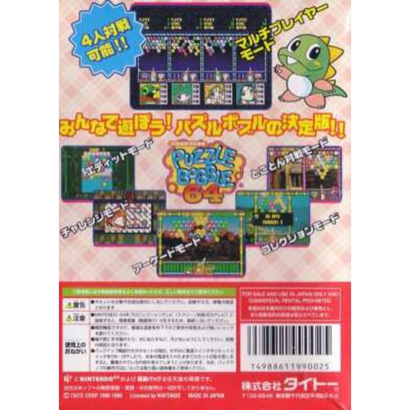The essence of pure four player competitive action taking full advantage of the 64s generous ports. Match up balloons of the same colour to clear your screen. So simple, yet so fiendishly compulsive. Essential after hours entertainment.