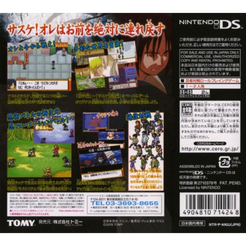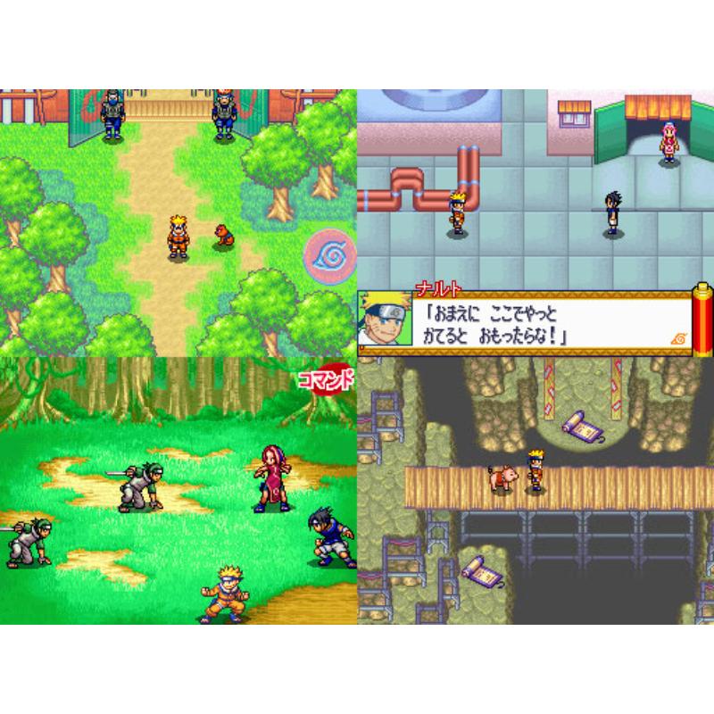 Colourful and well illustrated take on the Naruto world where modern speed lines and chic sprites meet the old world of feudal Japan complete with its favourite export: ninjas. The spare screen is used for hit points in the turn based battles but is also used to bring the anime to life by showing the huge attacks in it. So at least the player has been forewarned before a giant boulder cascades down.