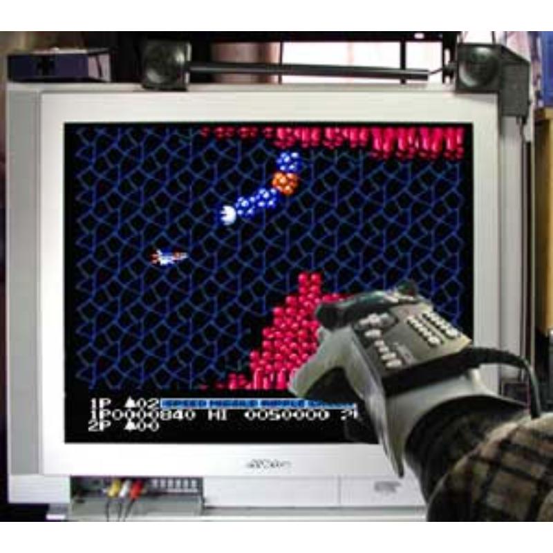 The height of geek chic fresh from the States and appropriately translated to an eighties market fresh from Back to the Future and looking like a prop from it. Donning the glove brings control to compatible titles and it looks very good with bandana and leather trousers on.