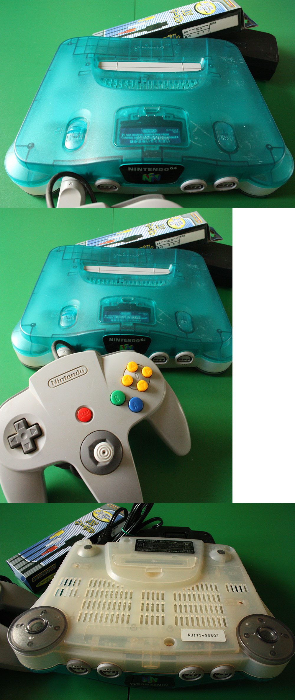 Second hand. Please note: this console is unboxed without manual. Please note: the controller is the standard N64 pad, bot the matching clear blue. Comes with third party AV cable, original power supply and standard pad. Compatible with televisions that can display an NTSC mode. Serial number NUJ15453302. Console in good condition with marking on the top panel.