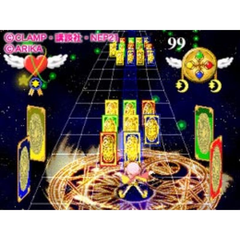 An usual game playing like a shooter but with puzzle elements and based on the massive manga series where the protagonists are on the quest of the Clow Cards, a al DragonBall. A very special limited edition coming in a specially designed Sakura themed holder with the Pocket Station that is used to collect the SD characters and also the Clow cards of the title which are used for fortune telling in love, studies, friendship etc.