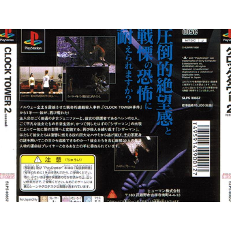 Further evidence of Japanese skills in making spooky psychological software comes courtesy of Human who were busy terrifying gamers well before Capcom's zombie onslaughts. Graphic murders involving scissors lead you to think you're next as you point and click light puzzle elements away towards revealing the murderer's true identity. Occasional appearances of the scissorman will put a chill down your spine and quick thinking is needed to evade his advances. A panic meter can be used if fully charged to escape temporarily however this can only be used three times before becoming exhausted. In game items can be used as weapons, but once used they can't be restored to the gaming world so quick thinking is a must.