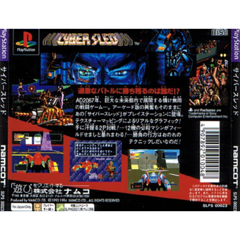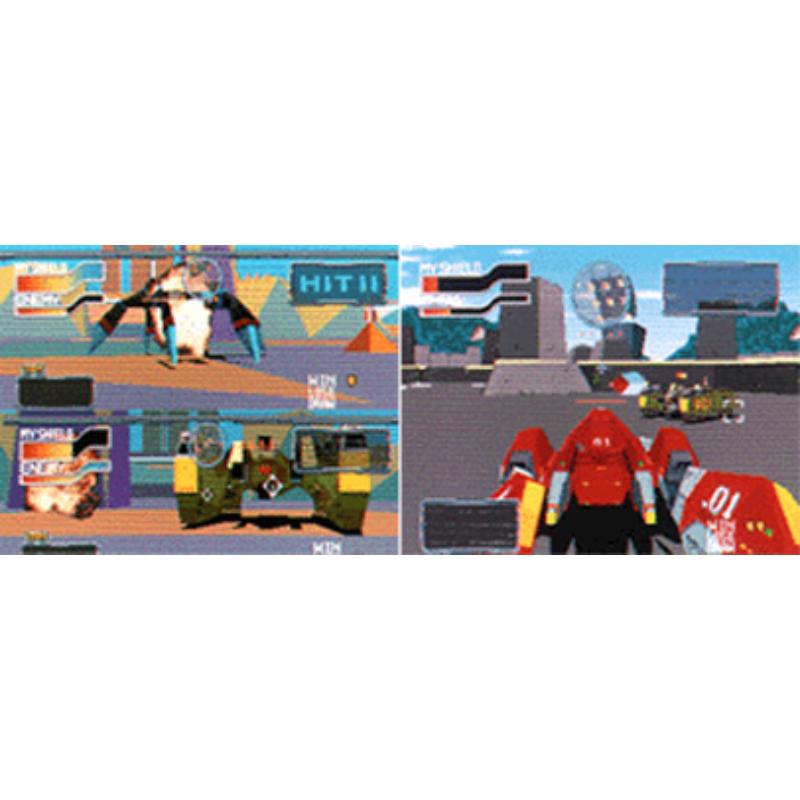 Conversion of the arcade monolith and early Playstation release being high up on the polygon count. Two mecha style tanks battle for supremacy in the arena with the key to success being to tactically out manoeuvre your opponent before unleashing a hail of bullets. Verying attributes of the sleds means no machine lacks a weakness: be it turning speed or armoury. Well thought out controls that utilise the PSX pad perfectly.