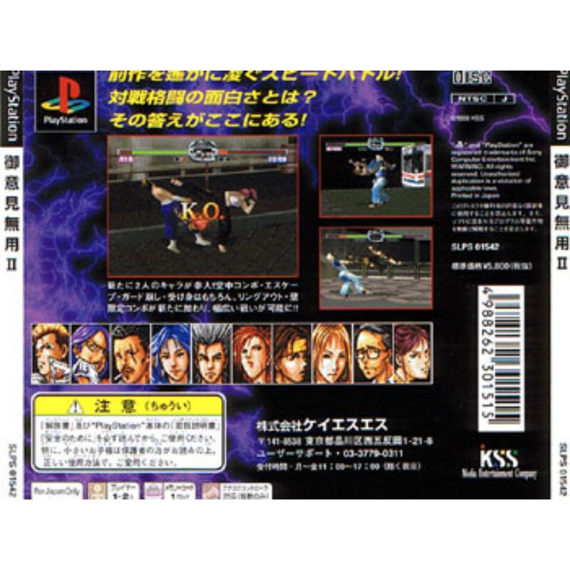 Programmed by ex-members of the Virtua Fighter team, this game has a yankee style, biker gang feel to it with characters varying from high school students to a yakuza type gangster via a wrestling-loving English teacher. The title means 'your opinion is worthless'. Fair enough.