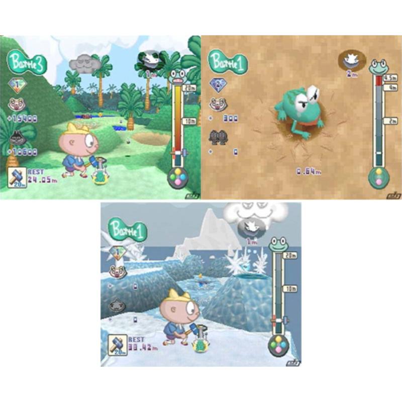 The 'Kero Kero' of the title comes from the onomatopoeia for the sound a frog makes. But no wonder the frog is squawking as it gets hammered around the course in a game of croquet with frogs instead of balls. Various conditions to consider too like in golf such as the wind direction or the fact that the ball is a frog and will jump off spiders webs or launch at passing flies. Allows players to enjoy their own characters in versus mode too.