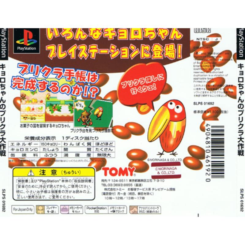 Superlatives fail this exquisite 2D platformer with charming mechanics and bold, brash graphics. Kyorochan has plenty of moves including being able to flutter in mid air to reach that tricky platform of dive bomb onto a bad guy (though unfortunately there are no droppings to dispatch being based on a chocolate companys mascot.) Kyorochan collects chocolates in the same way Sonic adorns his rings and the sweets have a protective role to play as Kyorochan can only be dispatched when struck carrying no candies. The Prikura of the title comes from Print Club and suitable stickered snaps can be taken throughout the levels to be collected in an album.