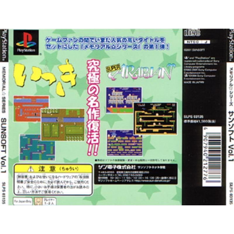 Contains two real gems from Sunsoft's back catalogue: Ikki and Super Arabian. In Ikki you must collect the money whilst avoiding ninjas - made far more appealing by Sunsoft's imagination: daikon and latern power ups as well as the appearance of a rather rough looking geisha of questionable gender to be avoided at all costs. In Super Arabian letters must be collected to form a word and clear the Middle Eastern themed level. Simple, yet fiendish: classic old school material of gameplay over graphics.