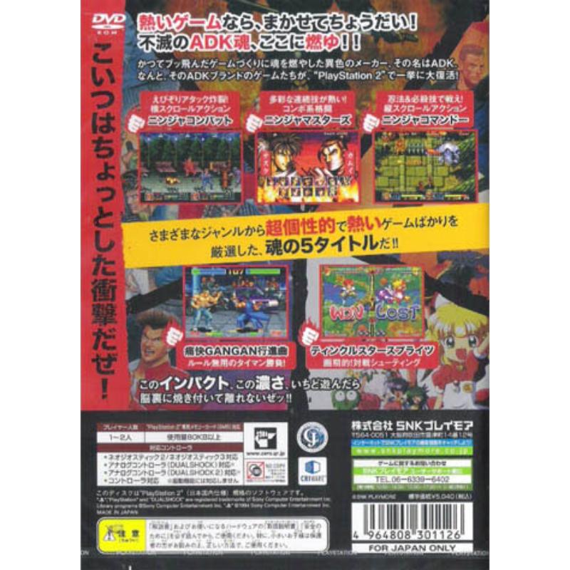 Any games feature ninjas are guaranteed to get the old Genki going. Yet three of these fine five forays into ADKs tantilising back catalogue are clad in ninja black. Ninja Masters is a really stylish 2D fight title that oozes atmosphere and was only obtainable for a few handfuls of smoke bombs on the NGCD or a hefty haul of shurikens on the AES, until now. Ninja Commando is a fine scrolling shooter in the old coin op style and Ninja Combat is a side scrolling fighter. Add to the mix GanGan with its solid 2D fight principles and the much vaunted Twinkle Star Sprites and the result is a very complete and well balanced compilation, at least for the fellow ninja fan.
