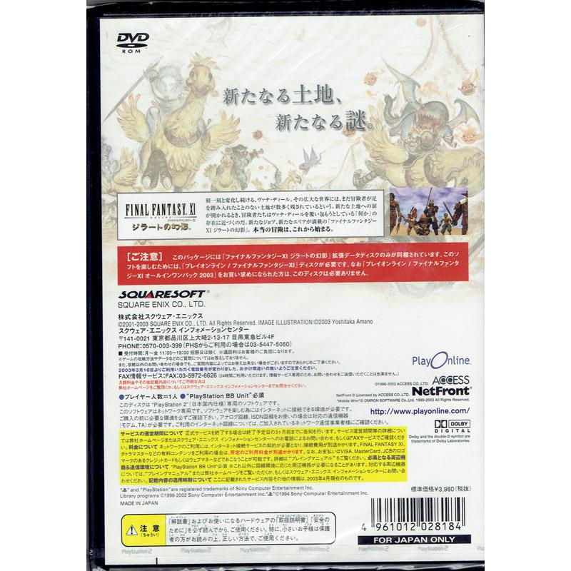 Brand new. Please note: this is a data disk that requires the BB Unit and is for online use only. It also requires the FFXI disk to be able to be used.