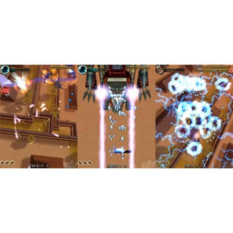 Embraces the trend to encourage dicing with danger in that the special smart sword weapon destroys all on screen adversaries with a slice of steel only if activated up close to an adversary. Otherwise it smashes away incoming projectiles back to where they came from - very useful considering Skonec's pechant for the bizarre bullet patterns. Also pays lip service to the hardcore shmup fan with in game route selection to allow you to choose: easier or trickier with bigger multiplier. And of course the option to ruin a perfectly good TV by standing it on end...