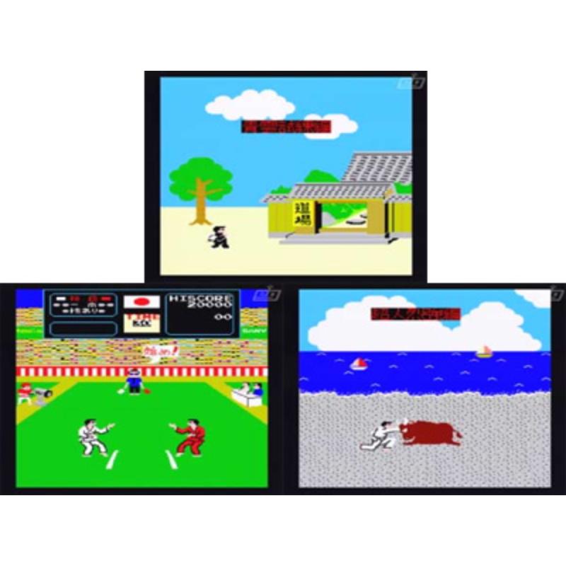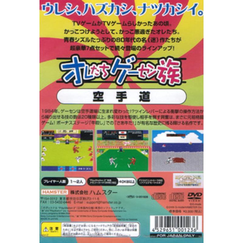 Conversion of the original one on one fighter Karatedou from way back in the eighties with game saves and option to adjust screen size, but everything else intact. The specials are tricky to pull off at first, but give a nice sense of achievement when you can start roundhousing your opponent. The nostalgic bonus levels still bring a smile too. The game disk itself is a picture disk of a 100 Yen coin. Part of the 'Ore Tachi Gamesen Zoku' series (We are the game centre gang - sounds tougher in Japanese!)