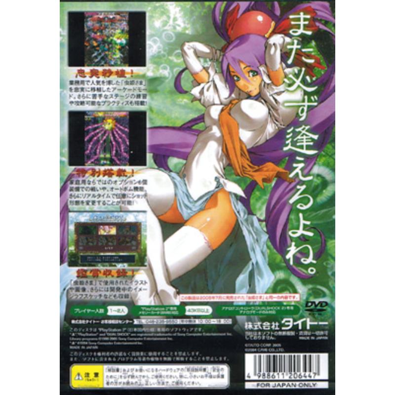 Developed by the hardcore's most coveted Cave and converted to the home format courtesy of Taito. Yet the love of Cave is rarely reciprocated as cruel patterns of projectiles spray across the screen - a hard love thats for sure. The versions of the Arcade mode are selectable along with a PS2 special Arrange mode with extras weapons to bolster progress. The title translates as Insect Princess and a genetically enhanced horde of creepy crawlies await the pretty princess. As you'd expect multiplier mayhem awaits those prepared to go easy on the smart bombs with the seasoned vet soon clocking up massive scores.