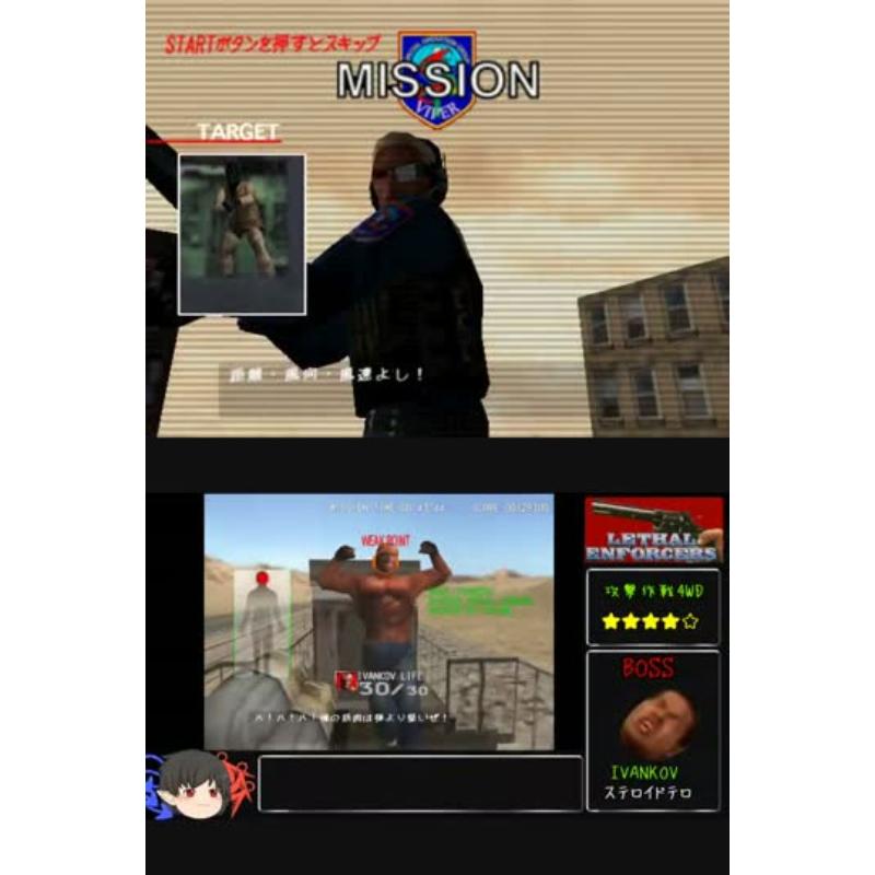 All the frills of the arcade on this home version. Alas a giant snipers rifle may not have proved the most practical so is sadly missing. But other than that, this is a fine light gun game that works a treat on the standard controller as the sight is zoomed around the screen before zooming in for a better look. That is a better look when the power has not just been shot out in the claustrophobic, near darkness levels. The tactical element is grand too with adversaries being taken down through hotel windows within the time limit to preserve the peace. And some fine Bond like tunes.