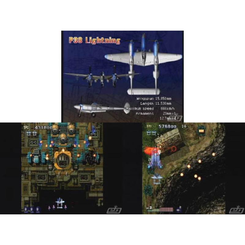 World War II themed, vertically scrolling shooter tribute to the Capcom 194x series. Straight from the arcades, the smart AI adjusts the difficulty to help or hinder you depending on how well you're doing. Part 2 gets more of the attention with souped up graphics, but the original is a very tidy piece of programming - a dependable Spitfire in the world of WWII airplane games. The WWII setting makes a refreshing change from the re-occurring outer space theme. The sequel is improved aurally and visually over the prequel, with little sign of any slowdown regardless of the relentlessness of the on going aerial assault. A competent set of conversions of the coin grabbing arcades. Psikyo Shooting Collection Volume 1.