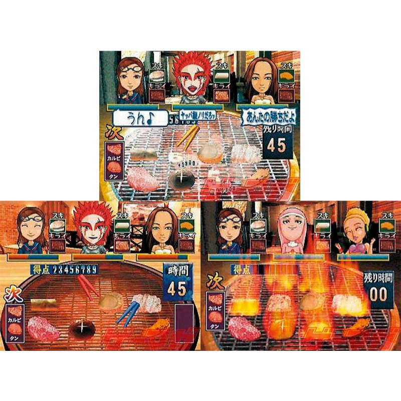 A superb concept and it works like a treat as players expertly use cooking chopsticks to deliver and flip slices of meat and vegetables to hungry punters. The meat sizzles away and the sound effects are very authentic so you can almost smell the beef grilling over the hot coals making for a great pre dinner blast. Customers chatter away but burnt meat or slow service will soon have their satisfaction meter tumbling down. Theres a great array of clients though but harder levels reveal a gaggle of fussy gourmet diners.