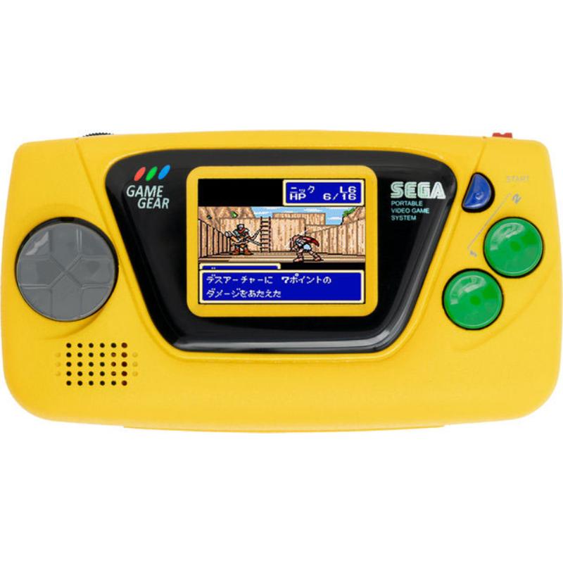 Shrunk down playable Game Gear to celebrate its thirtieth anniversary. This yellow version has four titles built in: Shining Force Gaiden, Shining Force Gaiden II and Shining Force Final Conflict plus Nazo Puyo.