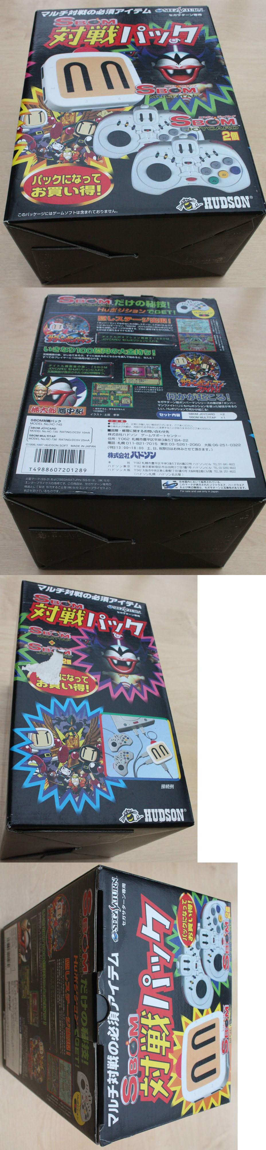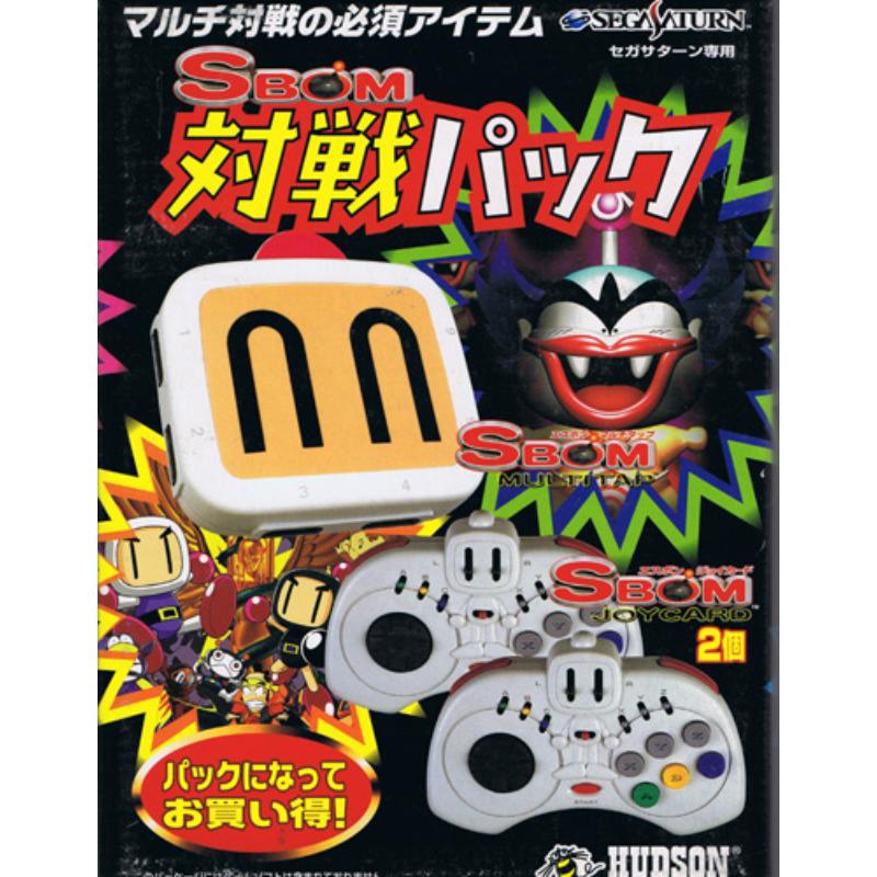 Delightful Bomberman themed multitap for the Sega Saturn allowing you to experience the ultimate multiplayer mayhem of Bomberman amongst other multiplayer compatible titles. With up to six players possible per multitap, this package also includes two 'joycard' joypads. The Saturn versions of Bomberman have hidden features when used in conjunction with these pads and their Hu Position switch. The pads also feature autofire facilities appealing to the shooter fanatics.