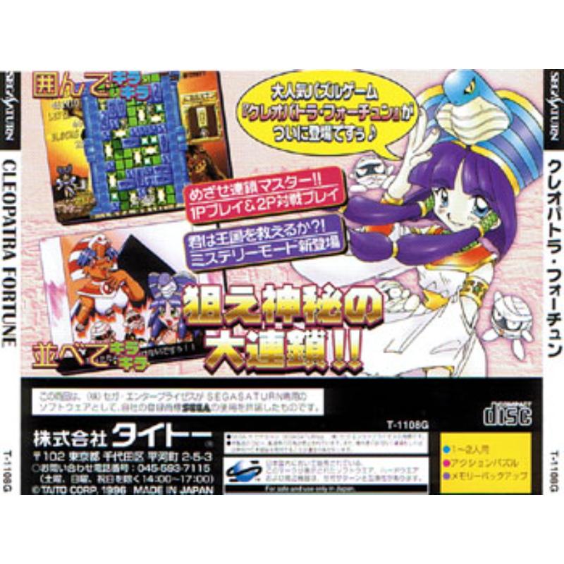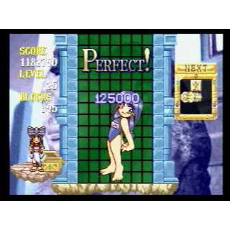 Import-only title in the Puyo Puyo mould which is probably the rarest puzzle game on the system. Perhaps Taito didn't expect Puzzle Bobble size sales for this title and only ran a low print? Nicely done Egyptian theme adds to the proceedings complete with pyramid style combo's with spectacular results.