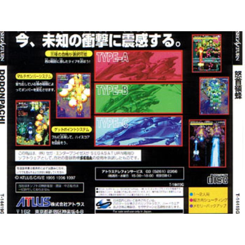 Sequel to the Cave arcade classic Donpachi, which was also converted to the Saturn. Despite a relative abundance of shooters on Sega's cult machine, Dodonpachi oozes confidence to stand proud at the top of the class. The wave of attacks, chain shot that works as a score multiplier and general style of this title was often mimicked (but rarely bettered) showing what an instrumental release it was.