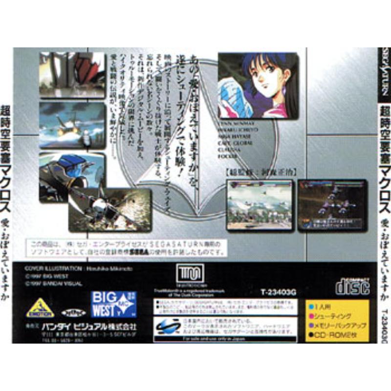 Absolute must for fans of the series with some sublime FMV footage as you'd expect with such a massive series and publisher. Rendered graphics improve the overall look over the SFC source material, though might upset shmup purists. You can transform between a fighter pilot and a mecha robot in the true spirit of the Macross series. Full title: The Super Dimension Fortress Macross - Do you Remember Love?