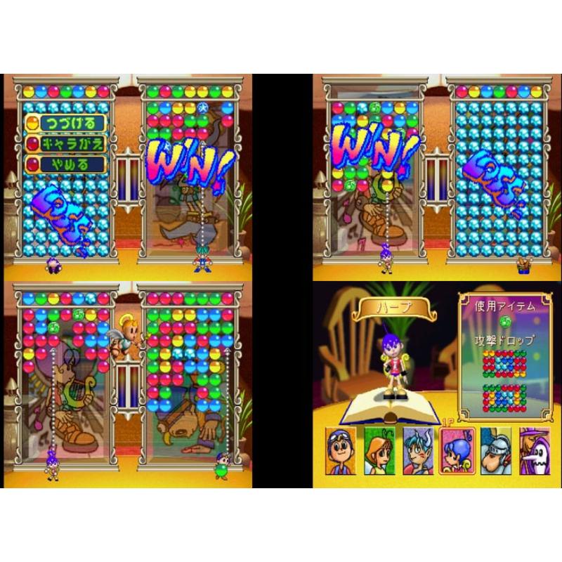 Gameplay is similar to the 'Puzzle Bobble' series from Taito therefore not recommending itself to the colour blind gamer. The usual array of cute, super deformed, fantasy characters to choose from. Two player is where Magical Drop excels. The English name on the cover is Chain Reaction.