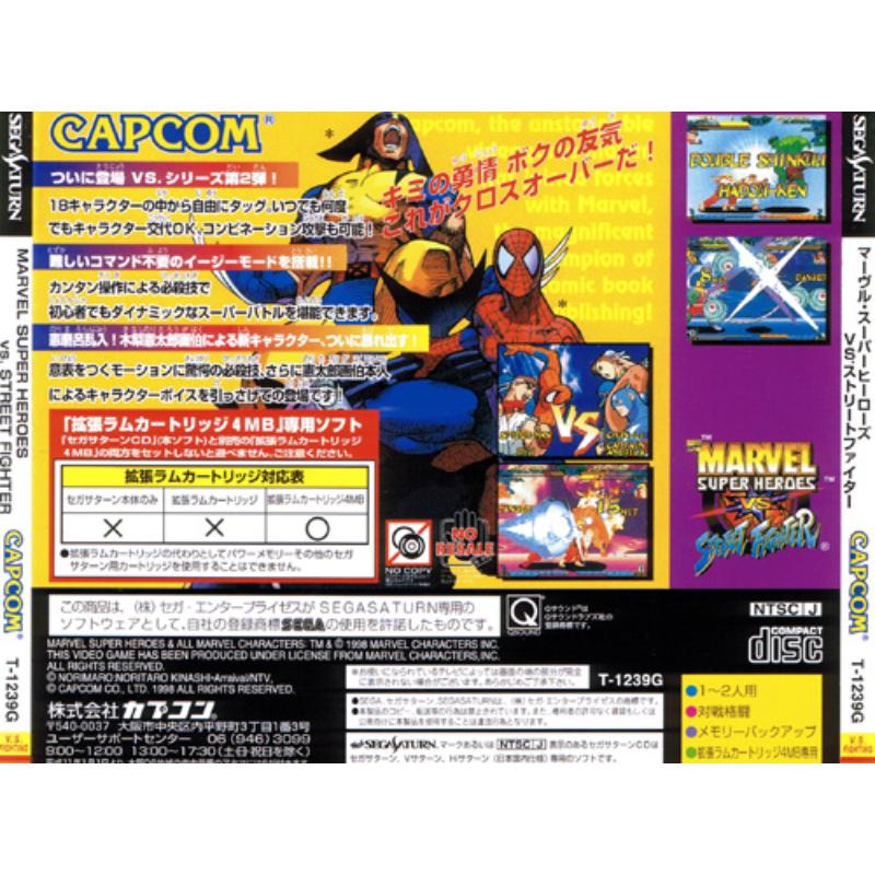 Two rich licenses collide in a veritable pastiche of martial madness with Capcom pulling the strings. Animation is incredibly fluid - even with four characters slugging it out and play mechanics are balanced to a micro gram. A sizeable roster of eighteen colourful characters to master. Possibly the pinnacle of 2D fighting gaming on the Saturn.