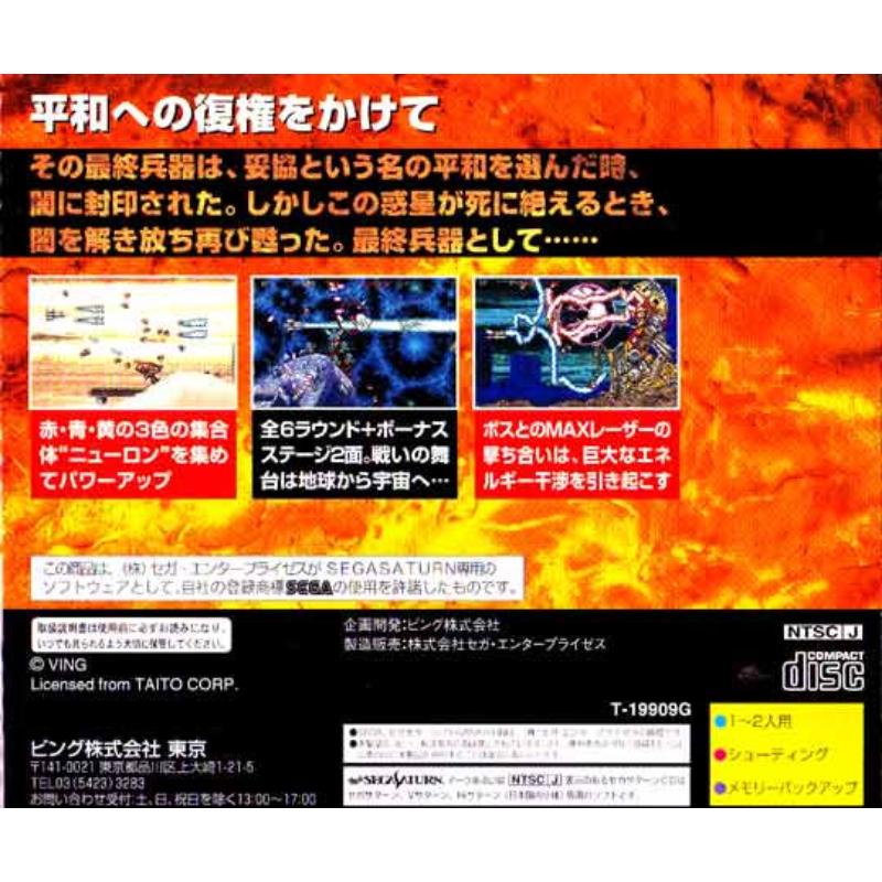 Excellent shmup conversion of the arcade original from Ving in which you must be looking to constantly power up your weapon or its power diminishes rapidly. A fine example of the genre even as well populated as it is on the Saturn.